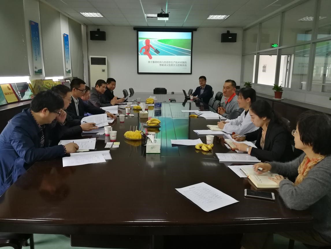 ▲2017年4月27日,百隆博士后工作站举办开题报告会,来自东华大学的甘以明博士后介绍了研究课题:用于服装时尚与色纺纱生产技术对接的智能语义信息交互控制系统。