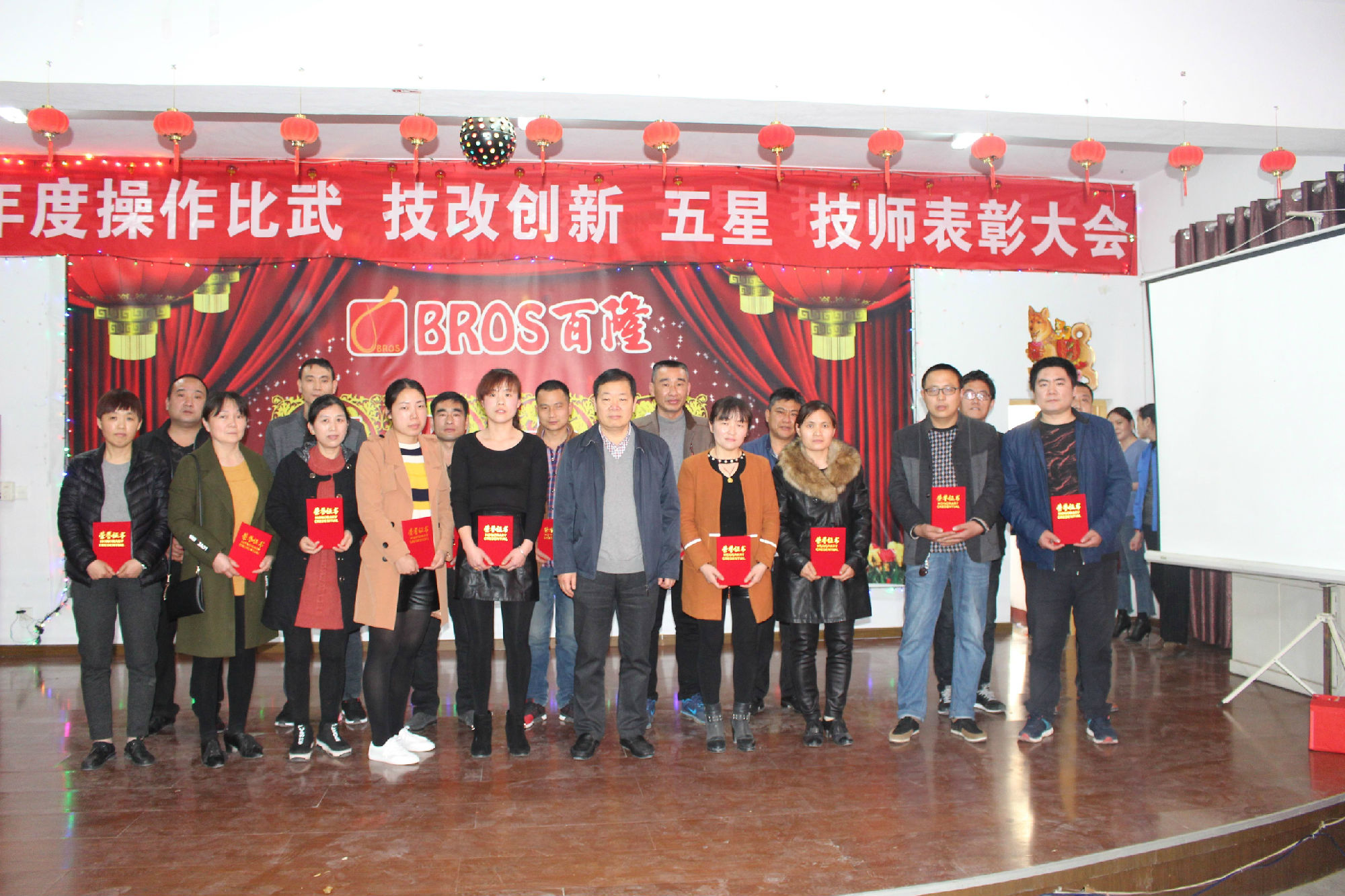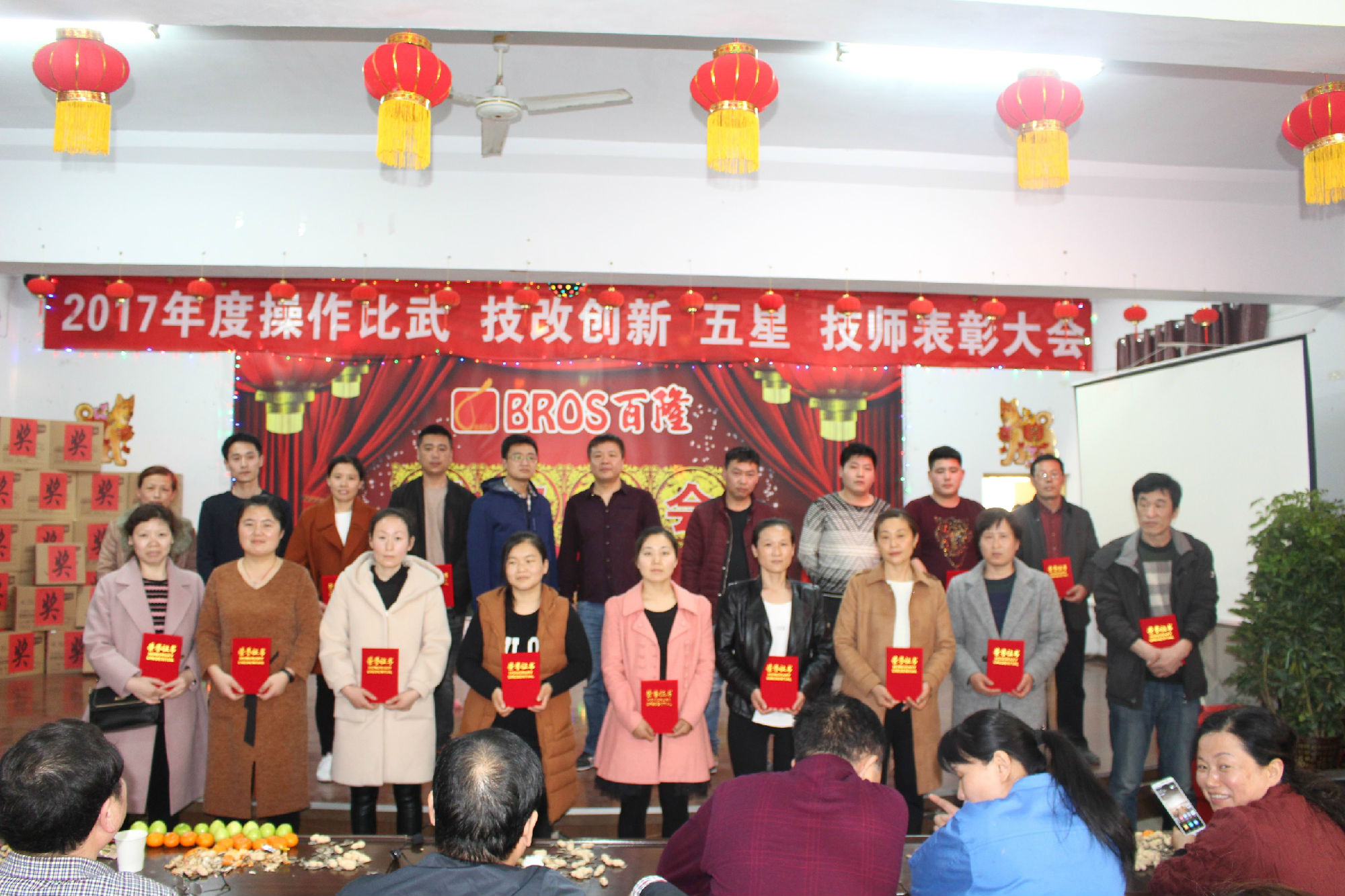 百隆旗下曹县百隆纺织有限公司多功能厅,欢歌笑语,音乐激扬,公司2017年度总结暨操作能手、创新能手、五星员工、新匠技师表彰大会渐入佳境。