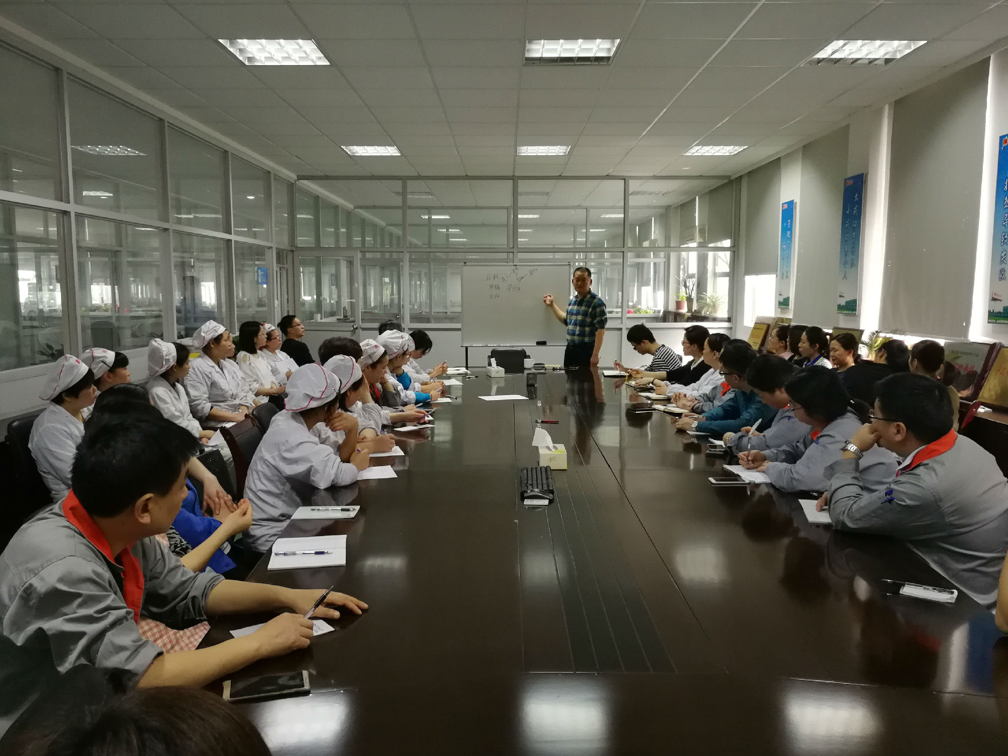 ▲当前,消费升级不断深化,行业需求呈现出从注重量的满足向追求质的提升转变、从注重有型产品向注重服务体验转变、从模仿型排浪式消费向个性化多样化消费转变。新年伊始,为提高产质量与服务水平,拥有高级工程师职称的百隆东方直属工厂总经理亲自给生产、技术线人员上课,传授新理念、新知识。