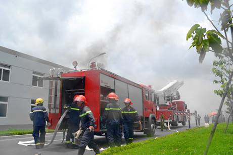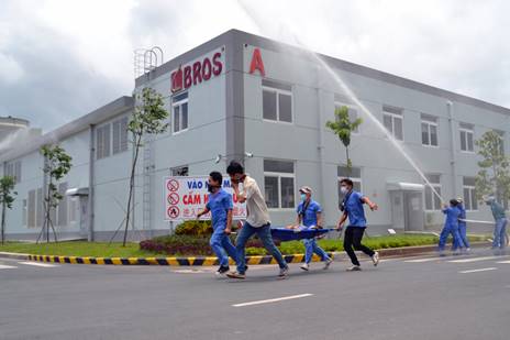 上图为百隆(越南)参与西宁省消防大队举行的联合消防演习