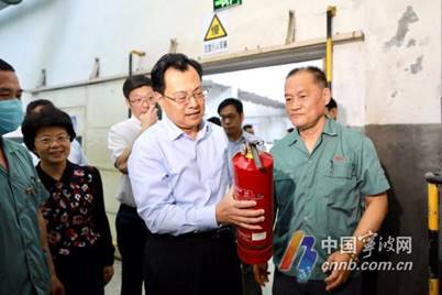2019年9月20日下午,宁波市市长裘东耀一行赴镇海区进行节前安全生产检查,首站即来到了百隆东方,在公司董事长陪同下,深入生产车间第一线,了解生产操作现场真情实况、查看消防设施设备、询问视察企业安全生产工作,并与企业领导深入交流。