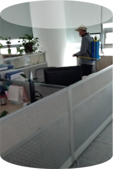 图为:百隆总部每天清晨即对办公区域、客户接待室进行全面消毒