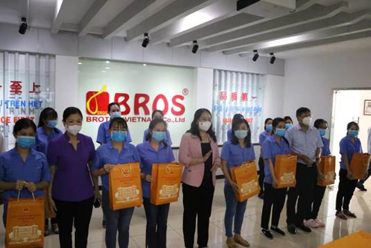 最后,国家副主席武氏映春、全越总工会副主席潘文安对 “三就地”越籍员工代表发放了慰问品并合影留念。