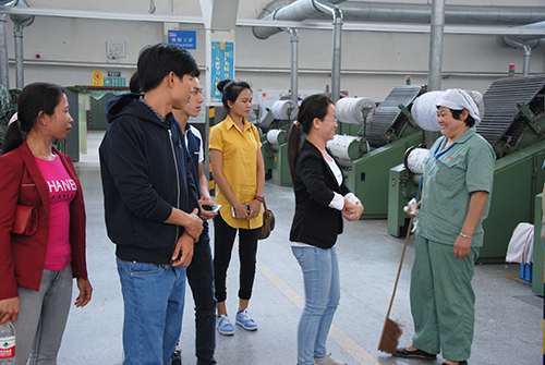 在百隆(越南)有限公司首届操作运动会上获得公司最高一等奖的各个工序6名代表,在百隆东方总部的精心安排下,为期一周赴中国宁波总部、以及上海、杭州等大城市进行游览、参观。6名操作能手在第一站:百隆宁波总部,就受到了百隆东方董事长、总经理等高层领导的亲切接见和热情鼓励;同时,6位越籍员工还参观了百隆东方直属工厂,并与直属工厂的管理人员就操作管理、质量把控、员工培训等生产管理各项工作进行了诚挚的交流和沟通。