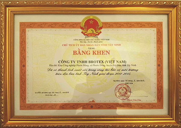 近期,经越南西宁省人民委员会评审,认定百隆(越南)在执行环保标准、行业影响力等方面达到政府制定的评审要求,授予百隆(越南)“绿色环保突出贡献奖”。这是越南政府对百隆始终坚持低碳排放、绿色发展经营理念的充分肯定,也是对我司勇于承担社会责任,高标准落实绿色环保执行成果的高度嘉奖。