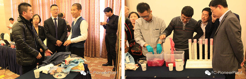 此外,各企业代表踊跃发言,纷纷提出了对采用EcoFRESH Yarn™ 技术的种种关切和产品开发的见解,包括技术工艺、生产流程、工艺管理、所需设备、成衣染色牢度等等,百隆副董事长杨卫国分别进行了细致的解答,并共同探讨了产品开发的多样性和合作的可能性。